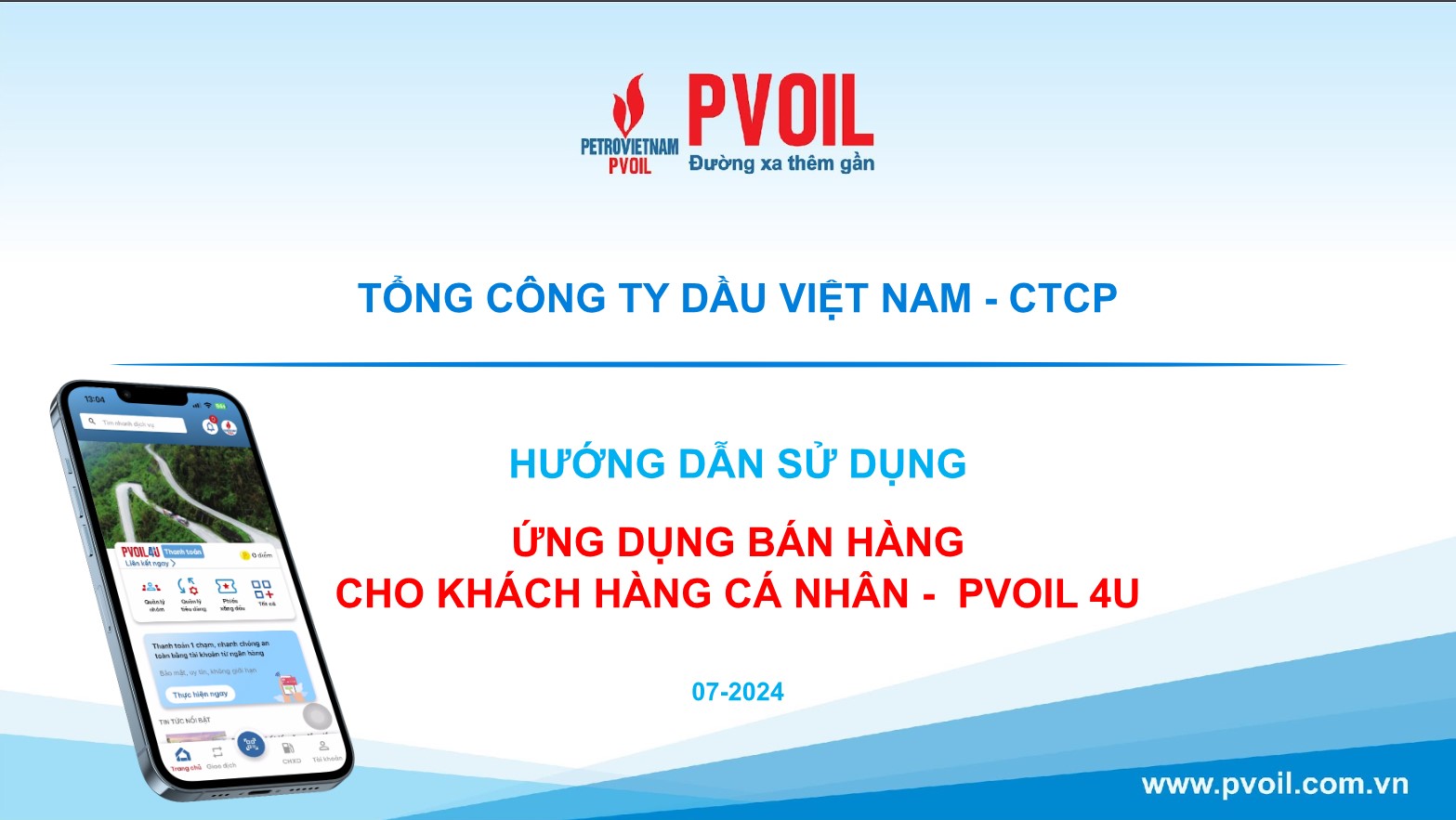 Ứng dụng mua xăng dầu dành cho khách hàng cá nhân, là một sản phẩm mới được phát triển bởi Tổng Công ty Dầu Việt Nam – CTCP (PVOIL) với mục tiêu mang đến cho khách hàng trải nhiệm mua xăng dầu thuận tiện, thông minh, nhanh chóng, an toàn và nhiều ưu đãi thiết thực.
